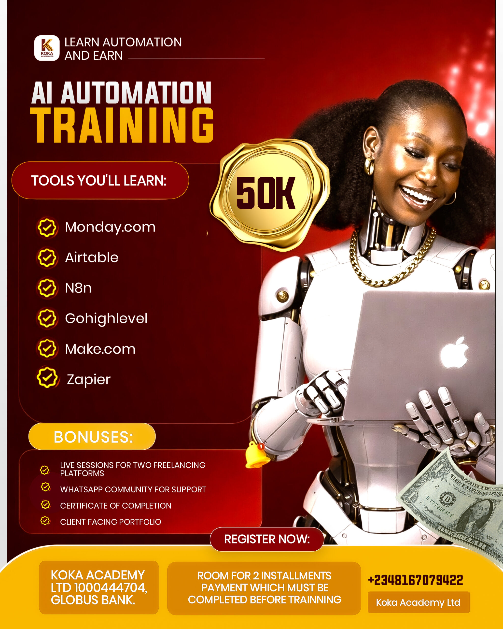 Koka Academy is committed to providing top-notch digital skills training that unlocks new career possibilities. We equip freelancers, professionals, and beginners with no-code automation skills to work smarter, serve global clients, and unlock higher-paying opportunities.